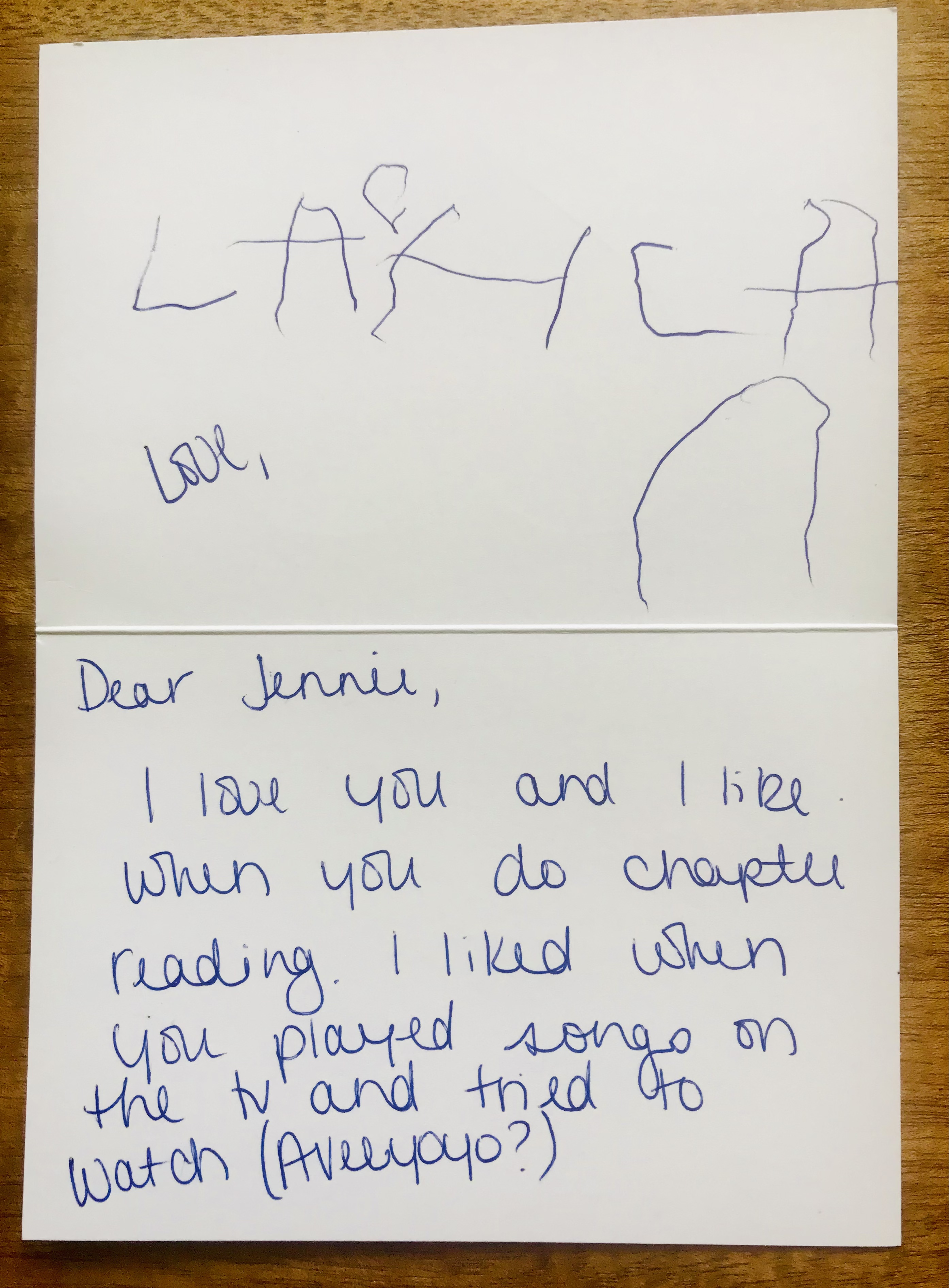 A thank you note.  The book and song is Abiyoyo.
