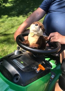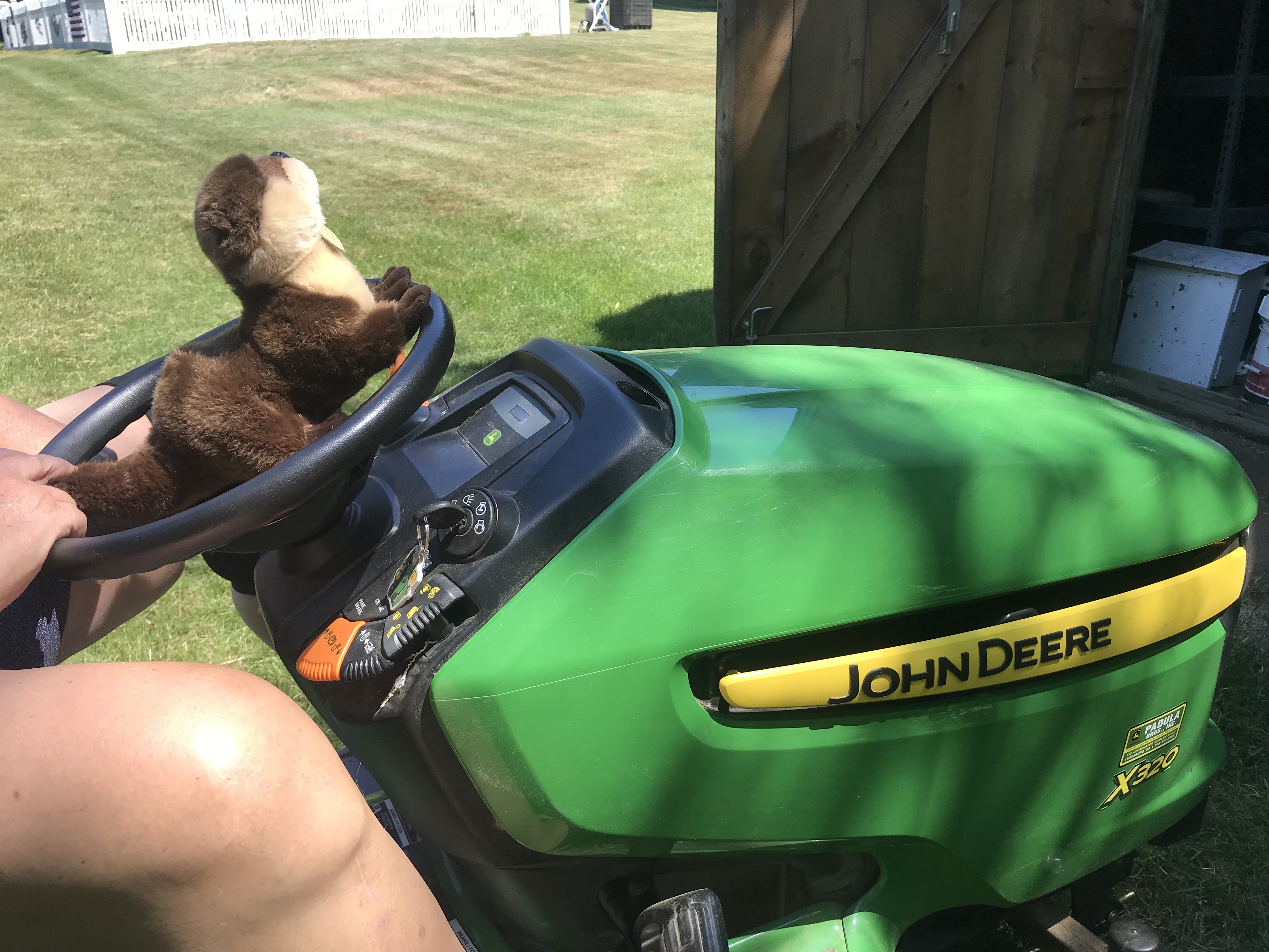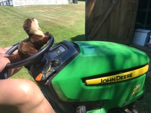 “Oscar, there you are!  You watched Steve mow the lawn yesterday, didn’t you?  Did he tell you you could drive the tractor?  Steve, what were you thinking?  Okay… as long as you’re there to help him drive.  I must be crazy allowing you two to go off and play on the tractor.”
