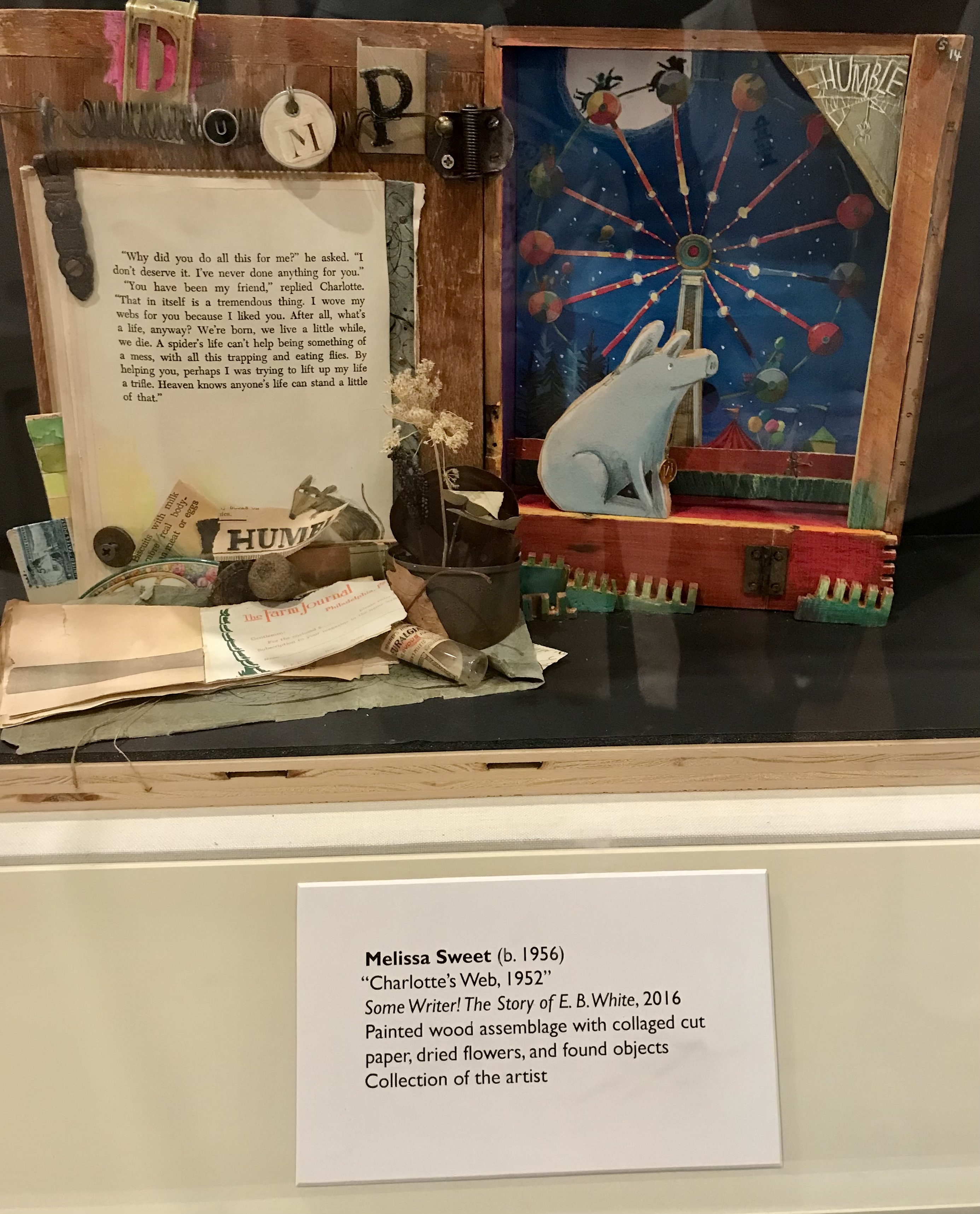 One of my favorite collages was Melissa Sweet’s display of the illustration and also artifacts she used in her book about E.B. White, Some Writer.
