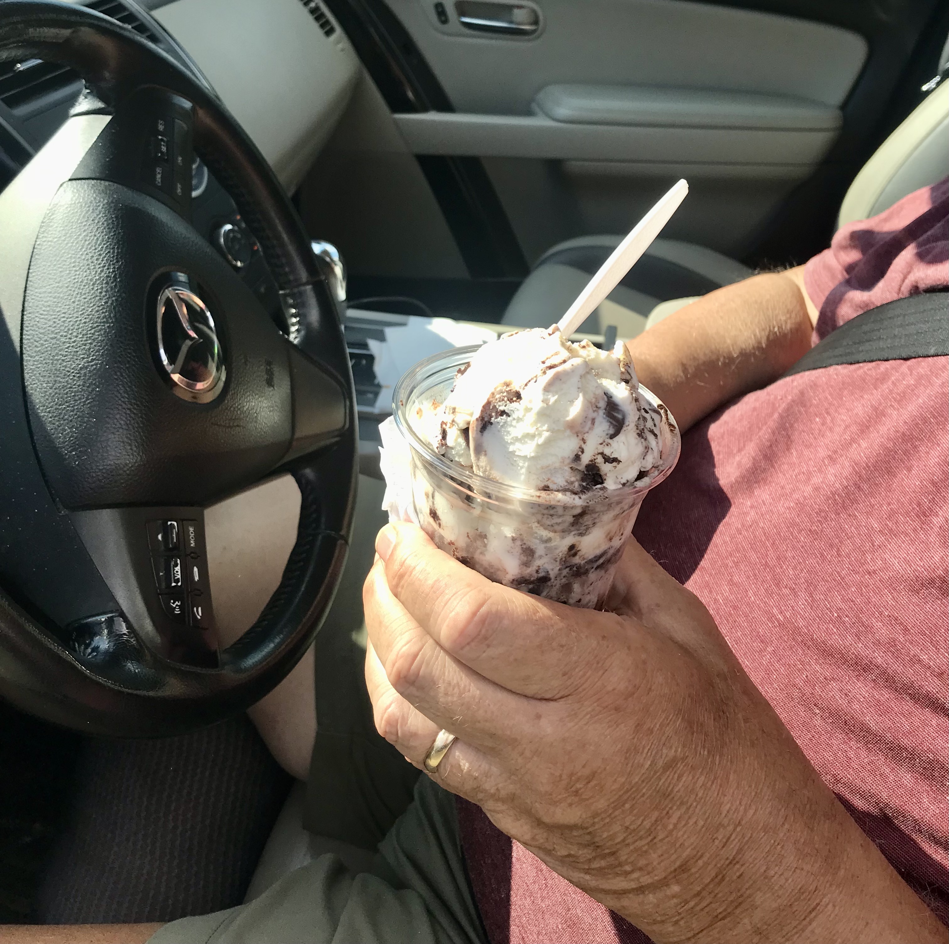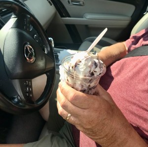 Perfect. Is as cup of ice cream as expensive in Groton as it is in Brighton (NY)? Tonight, $4.50 for a small cup of black raspberry soft ice cream with almond sprinkles. But it was worth it. Last night, too. 😂🙀😎