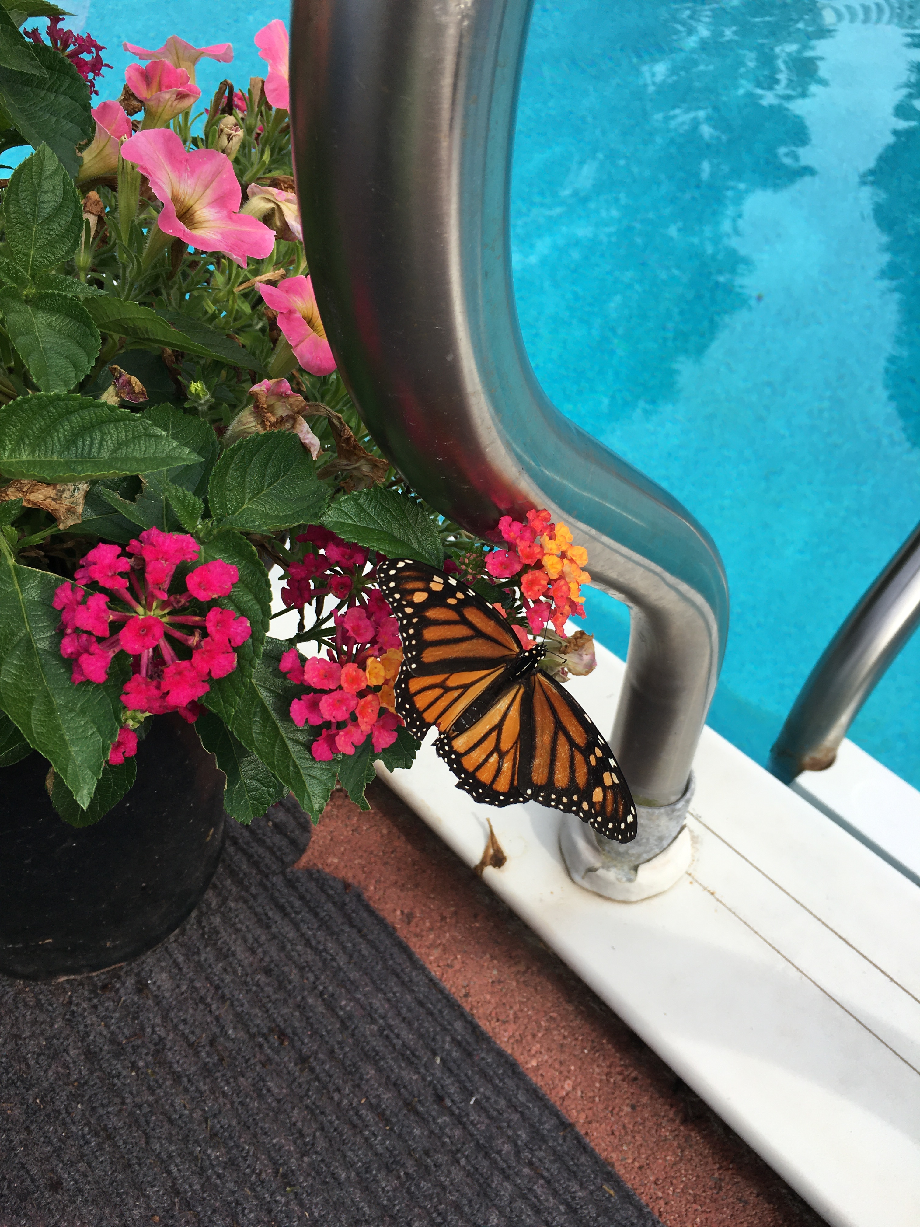 Beautiful photos and beautiful message, Jennie! I remember once seeing a monarch when sailing on Cayuga Lake (one of the Finger Lakes in upstate, NY). We were a mile away from shore, and this incredibly strong, beautifully-colored being with paper-thin wings was valiantly flapping its way across the water… Thank you for sharing this wonderful encounter (inspired in part by your beautiful pot of flowers) with a monarch!!!