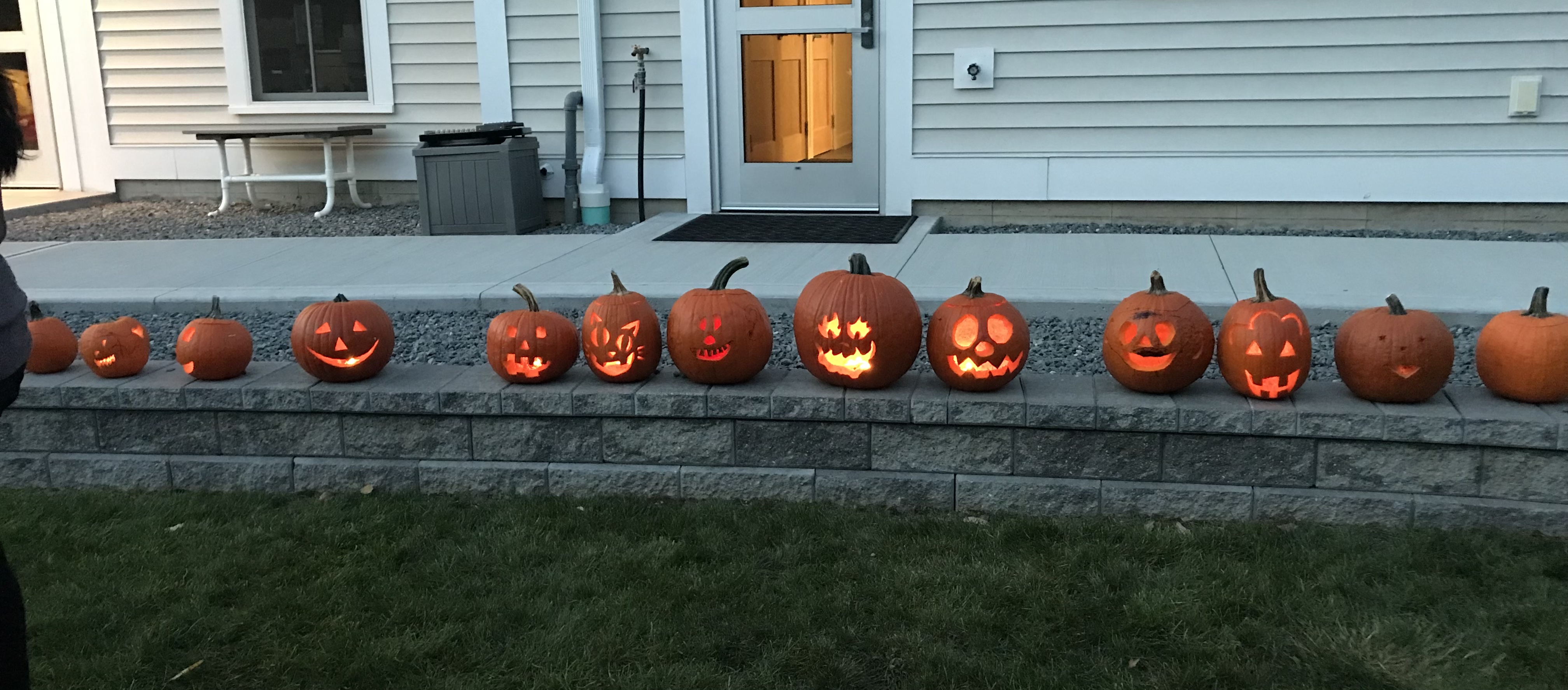Thank you for a wonderful, magical evening at school.  This was such an exciting event for children.  For families, it was perhaps the first time to get to know other families and watch children playing together.  For teachers, it was delightful to stand back and watch connections and laughter.  There was something special about tonight.  Did you feel it?  The weather was perfect and the fall colors were brilliant.  Pizza and your side dishes were delicious.  Pumpkin carving was busy and fun.  Lighting our jack-o-lanterns and lining them up along the stone wall was the best!  Dusk descended.  The perfect ending to the evening was sitting with our families in a big circle singing our favorite jack-o-lantern song and waving glow sticks.  It was a memory maker for the children.