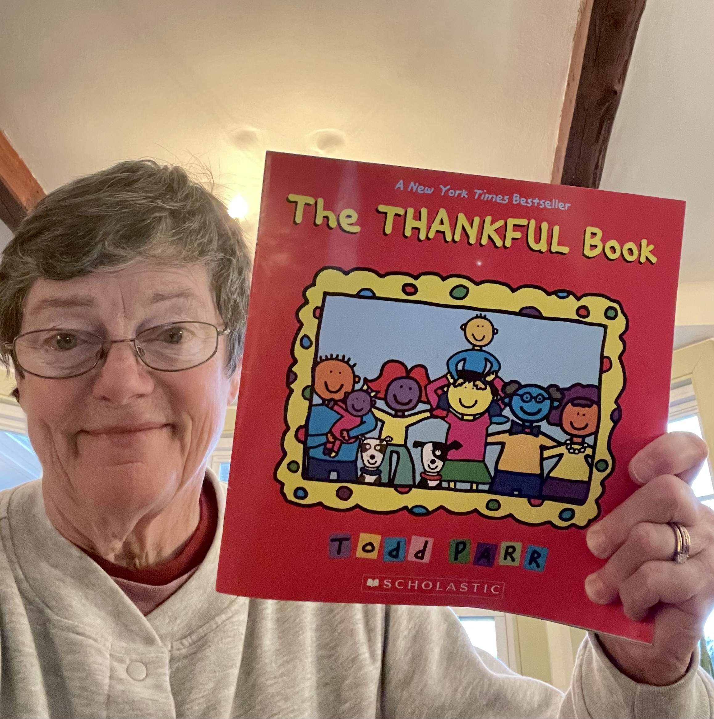 I have been sick.  Staying home for a week has been sometimes blurry, yet I was able to read aloud to the children at school on Zoom.  What a treat!  I read a Todd Parr book, The Thankful Book.
