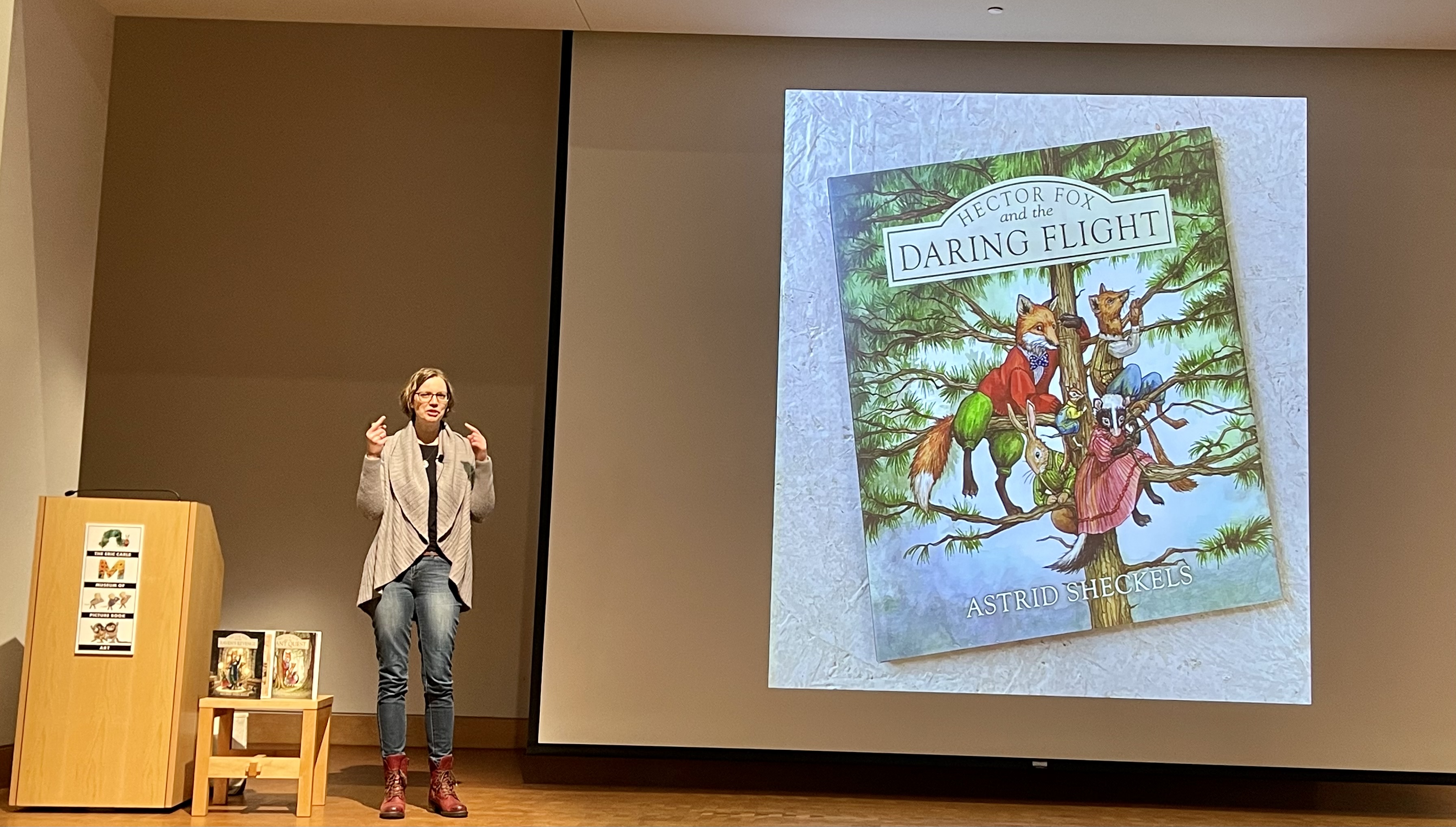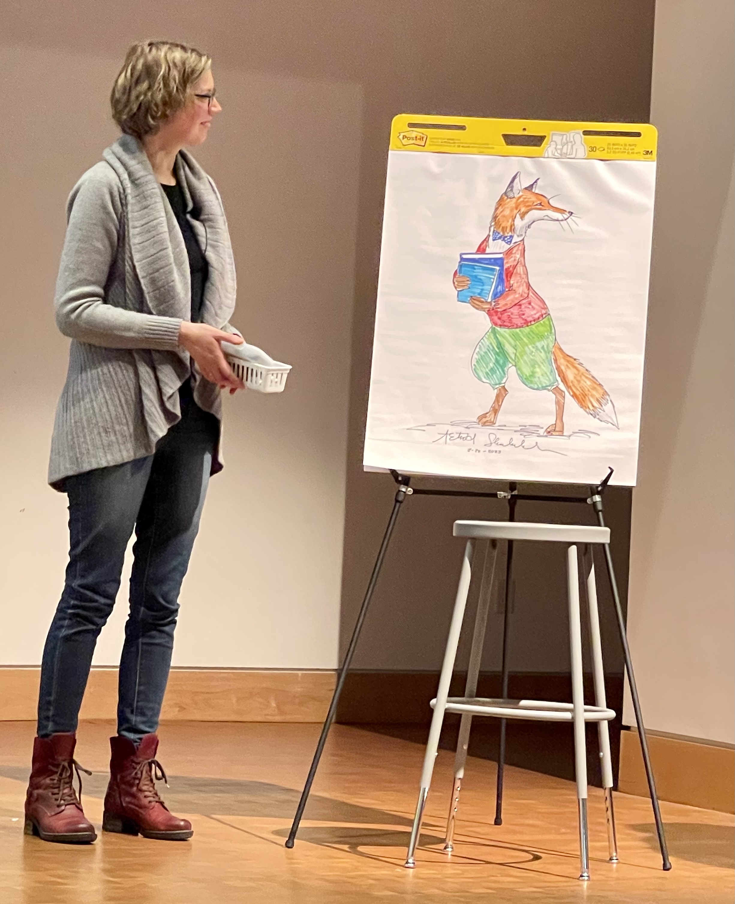 Astrid Sheckels had a wonderful presentation and reading of her new book, and she drew Hector Fox with the audience.