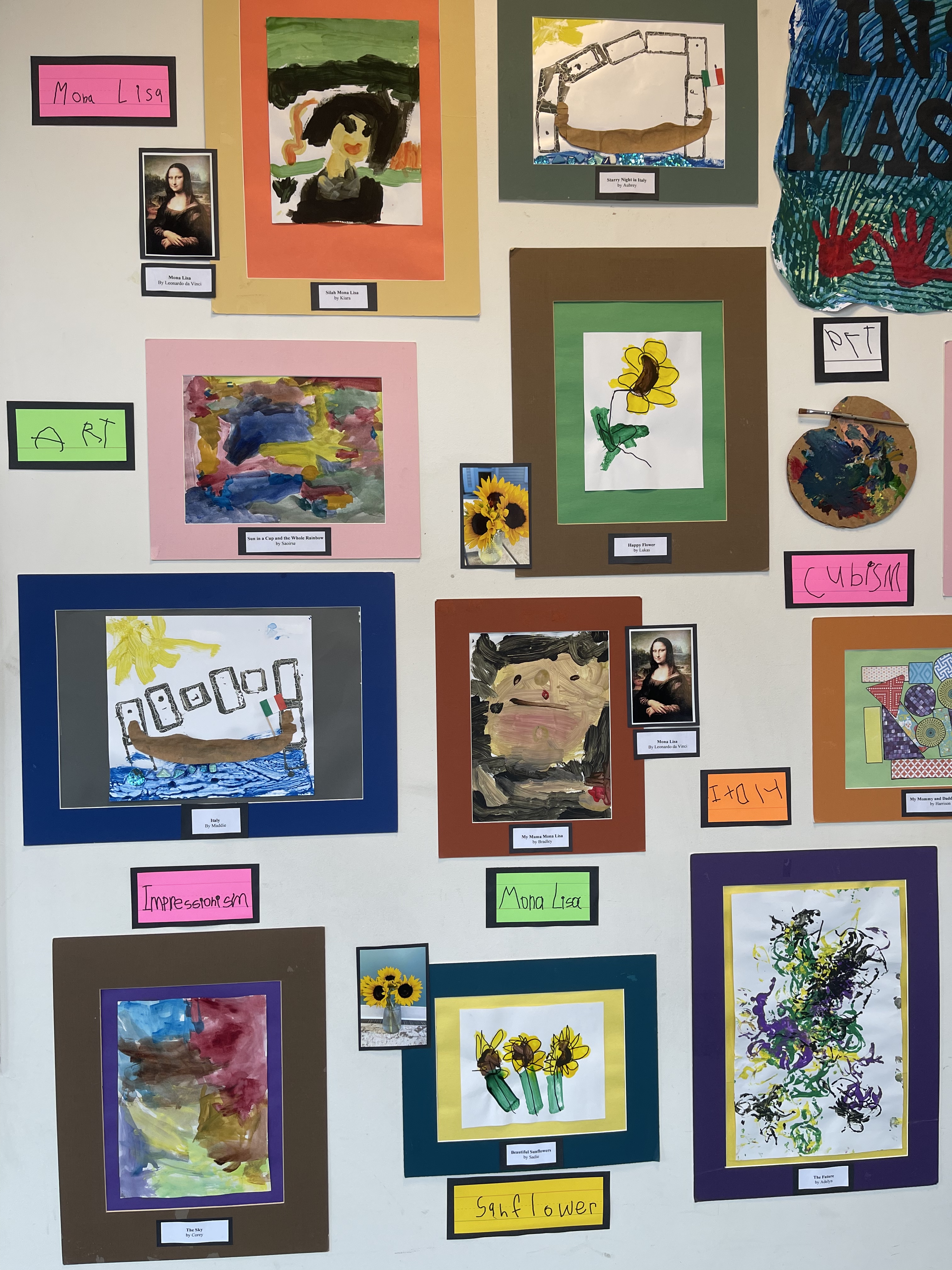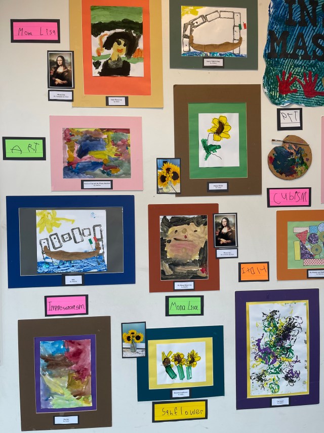 Of course, you made the best display of their artwork—an important component of putting value to it and making them feel great. The last line of the description of the Mona Lisa has me wondering. “Harrison is in her heart.” I’m going to surmise that he is the proud, cheerful young artist.