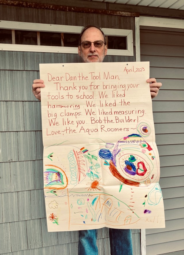 Thank you, Elizabeth. It makes a difference. Dan the Tool Man is beside himself, and posted this on his blog. He’s having it framed. Never underestimate what a thank you letter can do for another person, and for the children who write it.