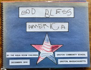Me: “We designed a quilt because the children loved singing “God Bless America.”  Milly made the quilt and we went on a field trip to NYC to the Intrepid Museum.”