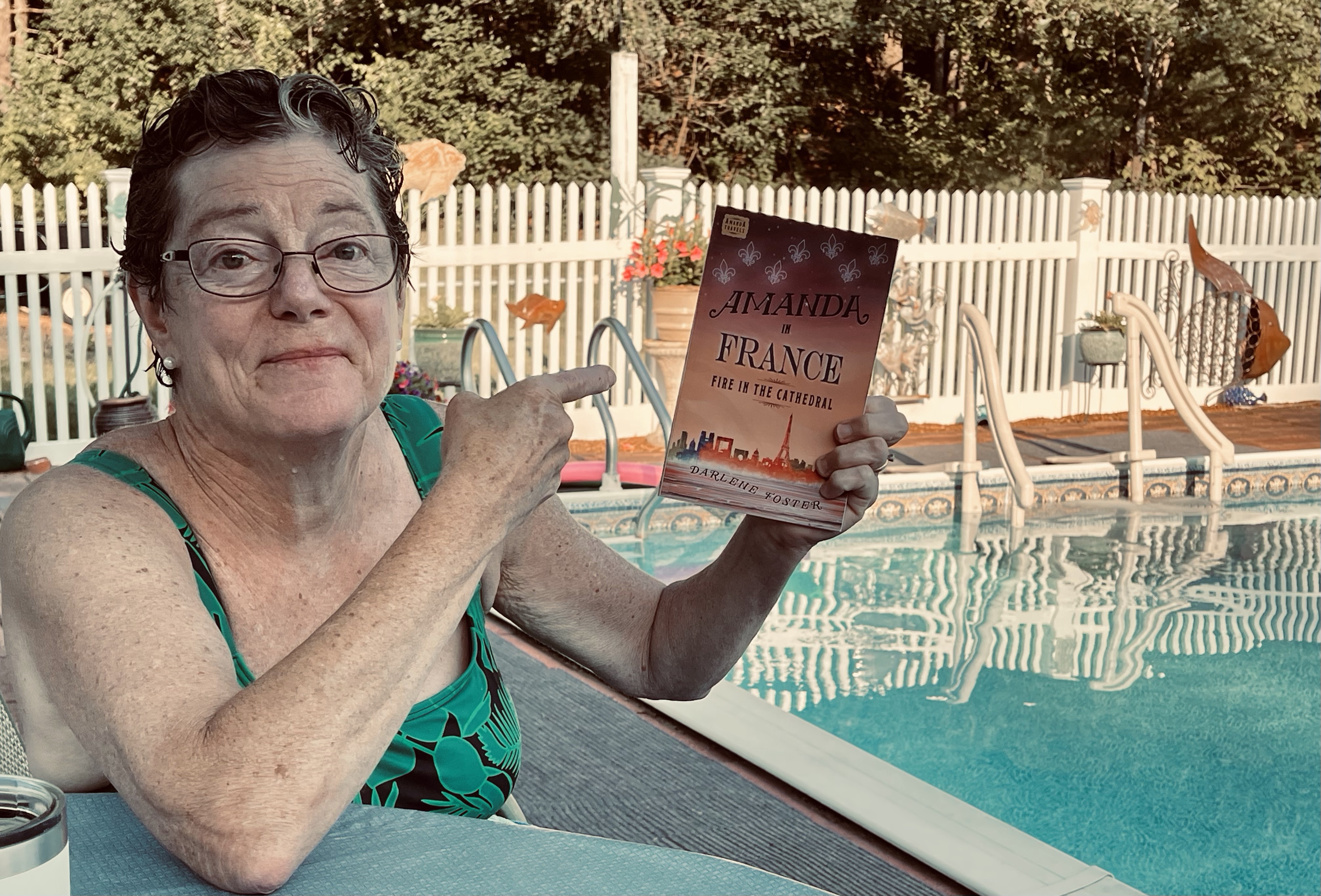 Thank you, Teagan! The pool is our ‘vacation home’, right in the backyard. Small house, big yard. We’re lucky that our yard flows into the neighbor’s, and the next neighbor, and so on. We come and go with each other, true backyard neighbors. Reading Amanda books is a treat, and I’m glad I captured this for Darlene. Hugs!