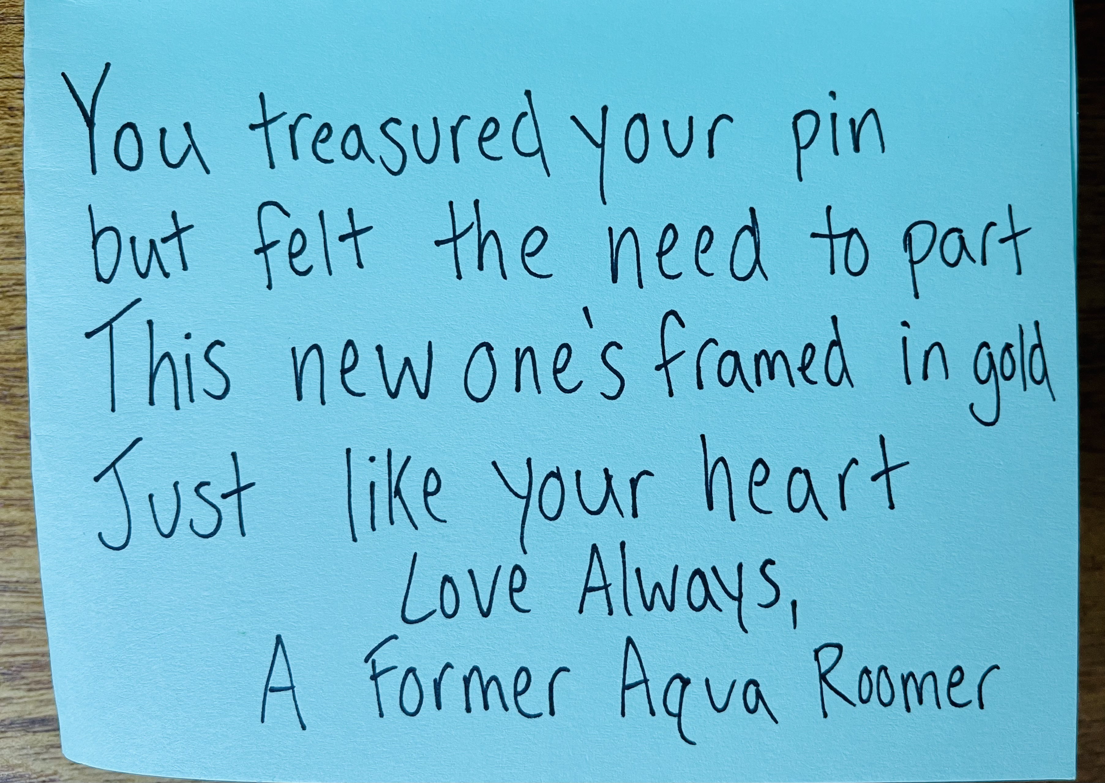 11. You have that way of affecting the hearts of all your Aqua Roomers so the giver may stay anonymous forever. Thank you for sharing this.