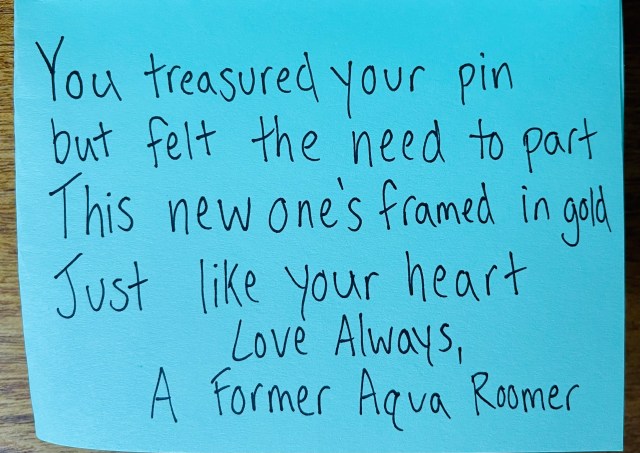 14. Obviously your former Aqua Roomer knew much of the backstory to you giving your pin away – that in itself must have made a huge impact on them. And once again opening the door for your new library group to be a part of the link.