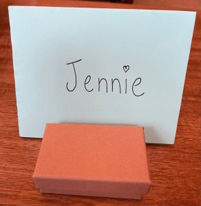 This week I went to the library for my Read-Aloud group.  I arrived early, and there was a card with a small package on the table.