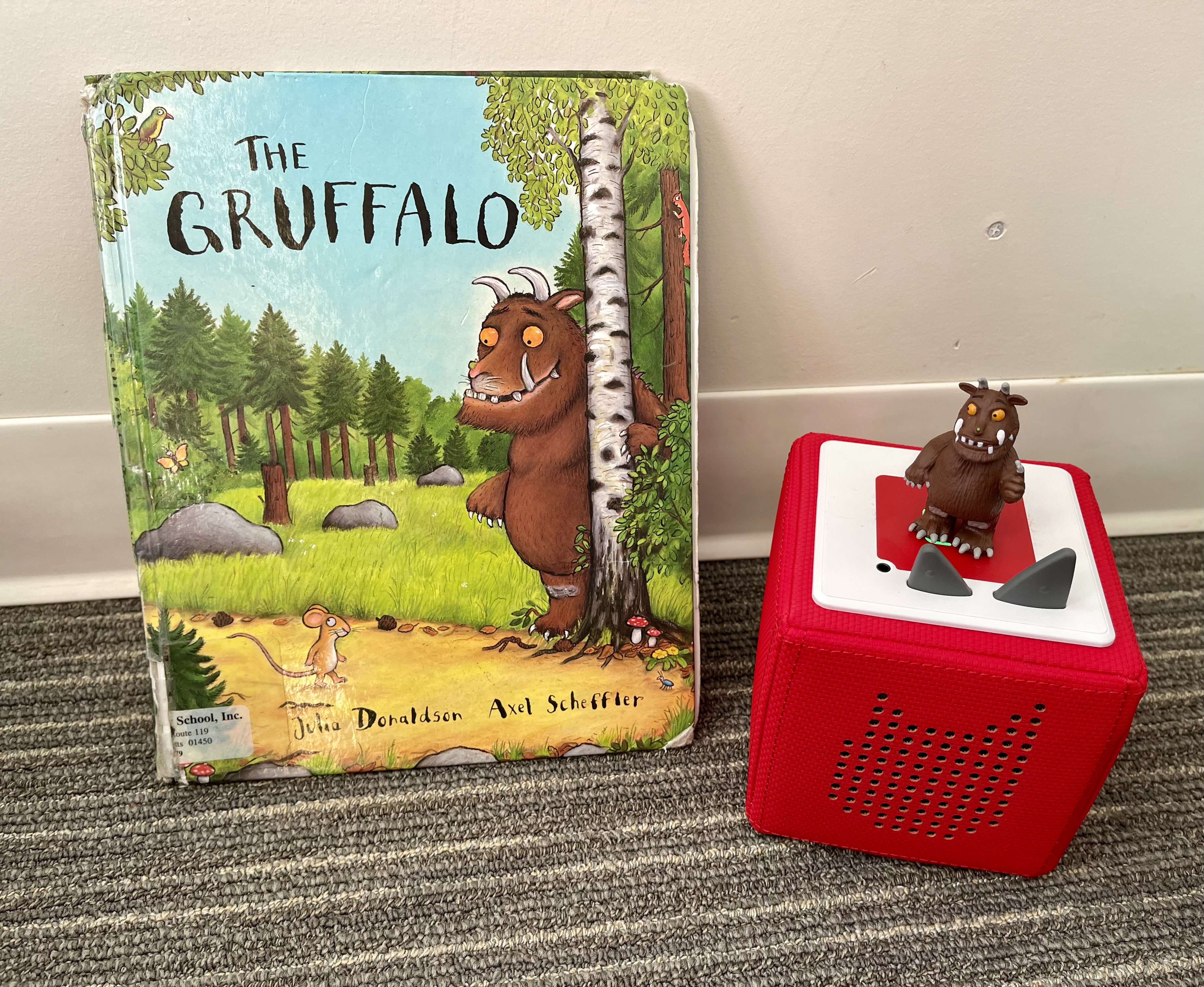 Today at school I read aloud a classic, favorite book, The Gruffalo, by Julia Donaldson. Next, children could listen to the story read aloud on their own. All they had to do was put the Gruffalo character on top of the Toniebox.