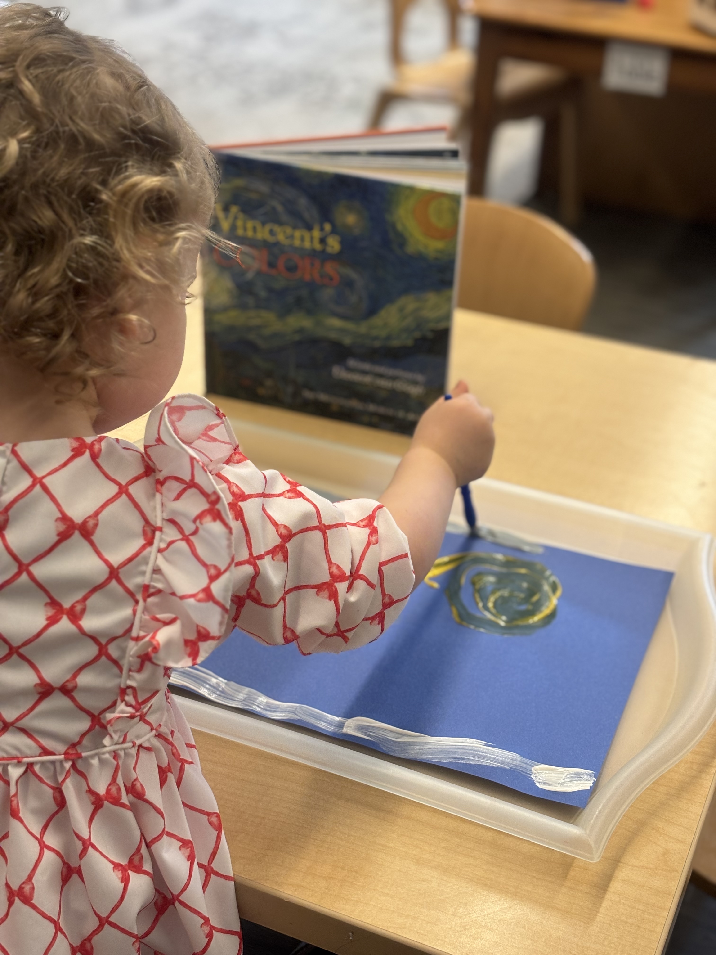 How?  With real artist paints in tubes squeezed onto pallets, and wearing berets, children have the tools and the inspiration to paint like a master artist.