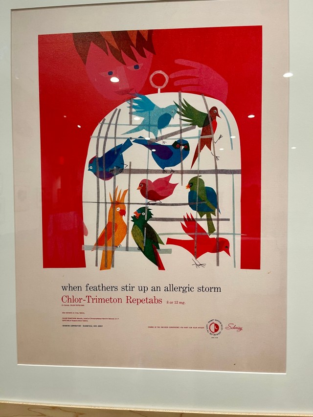 Did you know when Eric Carle arrived in America, he worked as a graphic designer in New York?  This is an advertisement from the 1960’s for an anti-allergy medication.  The technique and art for the birds is much the same as he used in his children’s book illustrations.
