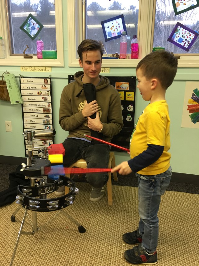 When he was in high school he came to play the keyboard, drums, ukulele, and other instruments for my class.