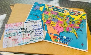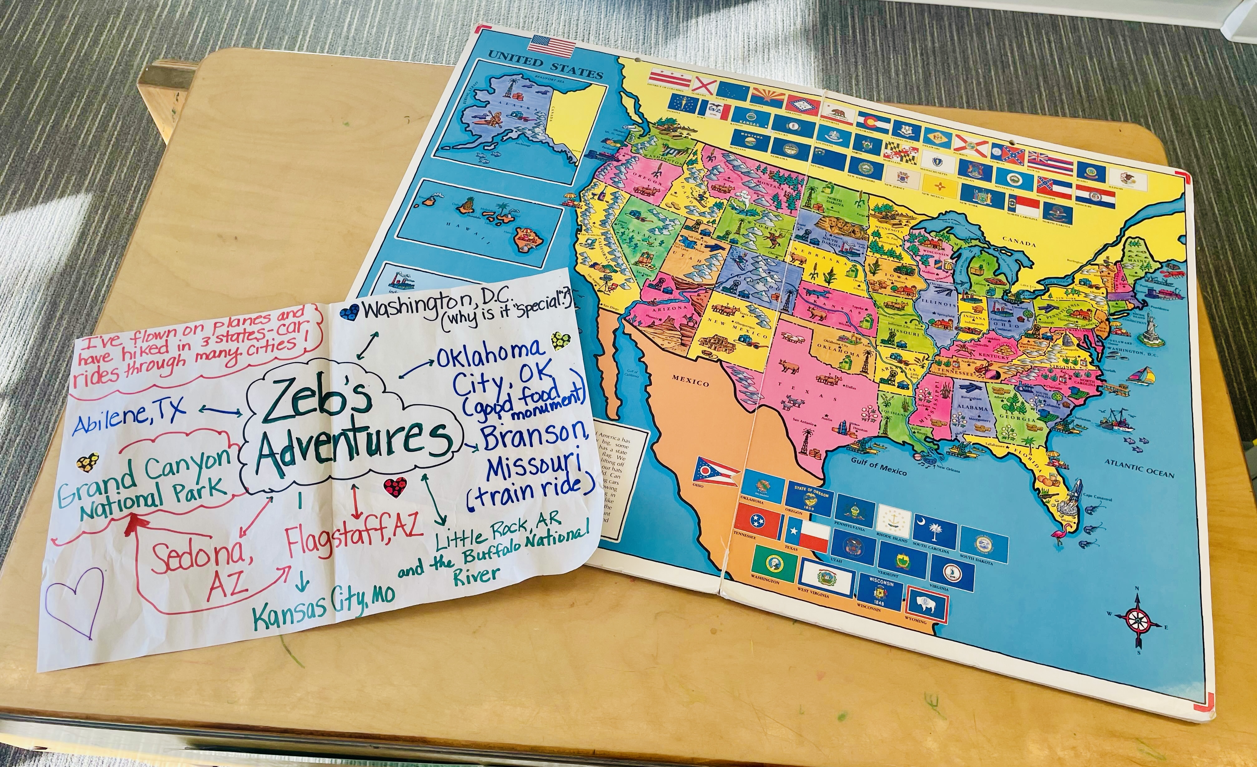 We talked about Africa and looked at our Big Book Atlas. Zebras are from Africa, but Zeb is from Missouri. We found Missouri on the map, and we kept the Atlas out all morning .