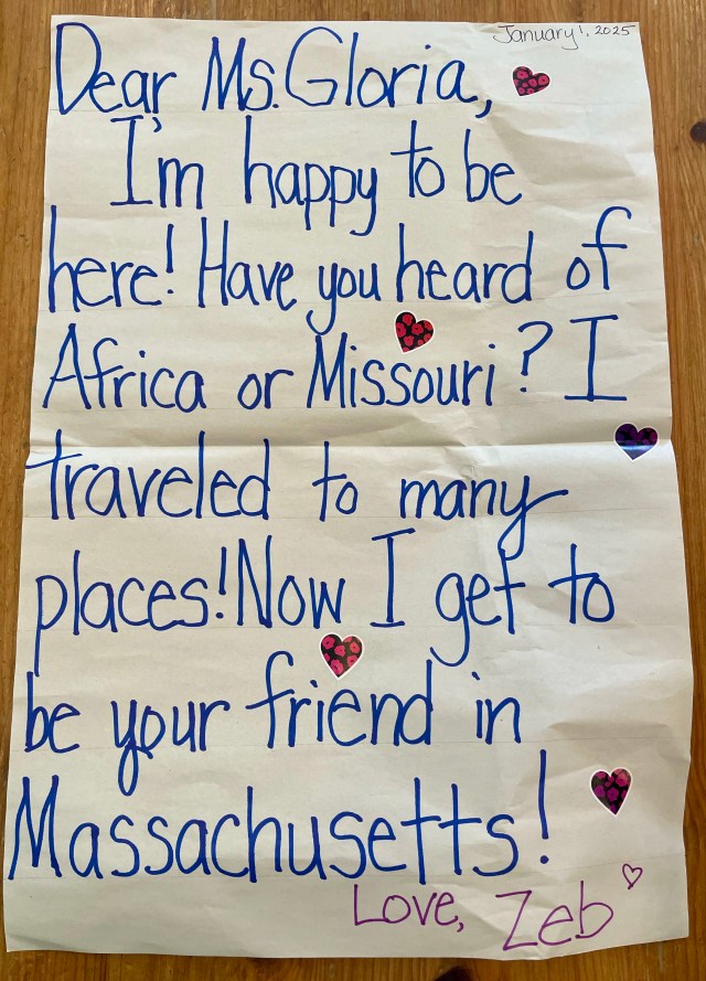 Thank you, Zeb. Your newfound friendship with Gloria has been a spark of love and caring in the classroom.
