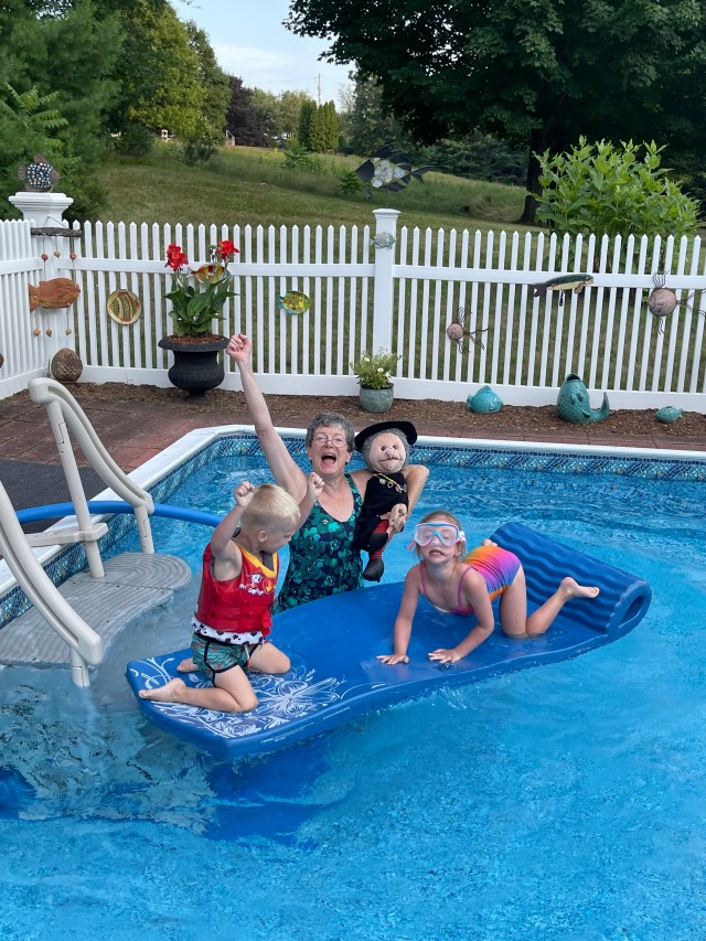 28. Hard to miss where that was going, wasn’t it? Lol. I’m glad you went with it. Gloria looks like she had as much fun as the kids. What a great way to spend a hot day, Jennie. Love it.