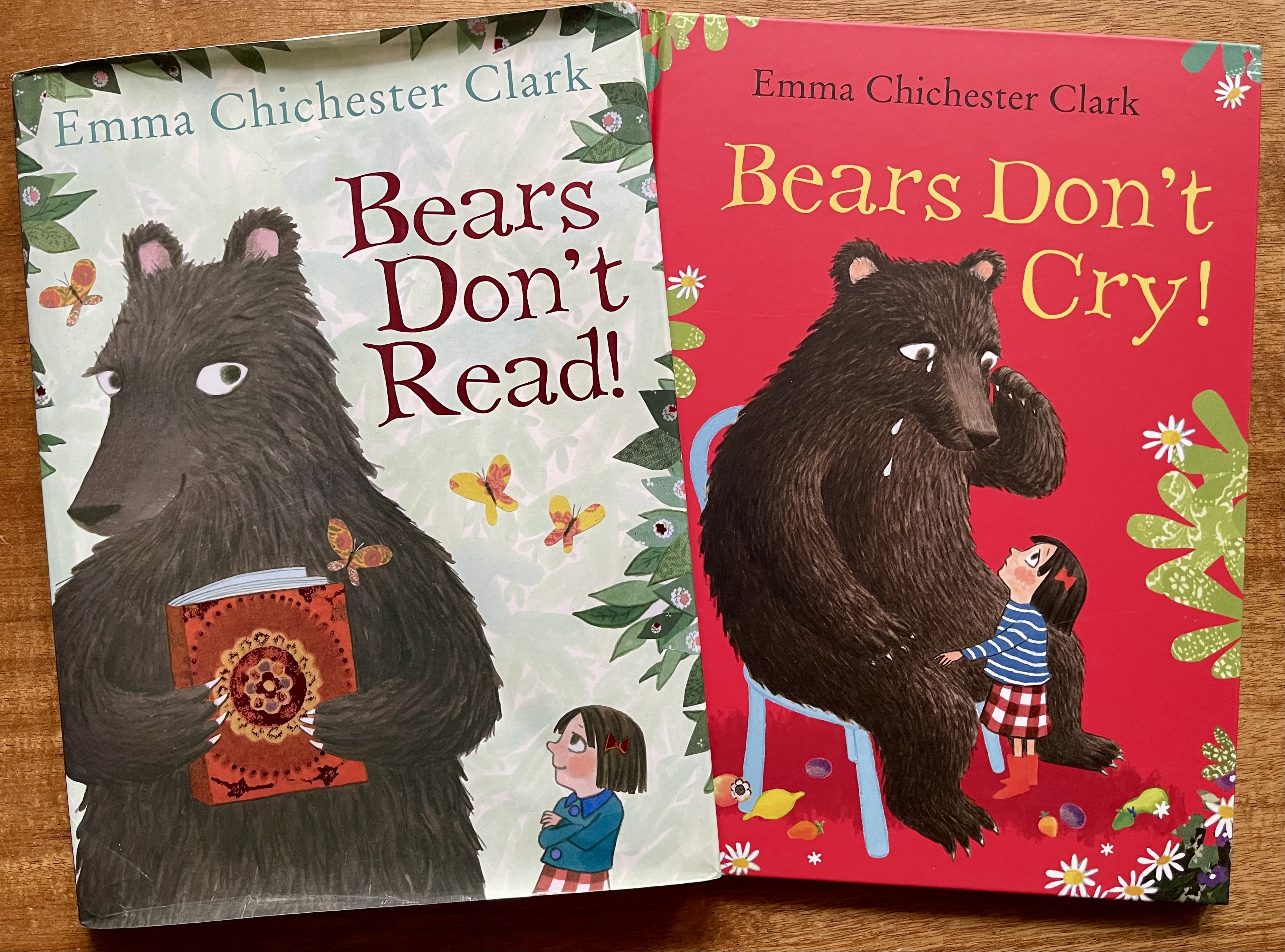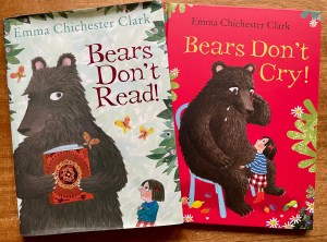 I discovered the new book (cry) and then found the first book (read) that was written ten years prior.  Together they tell the story of a bear who wants more,  He’s bored.  He goes on a search and discovers a book with a picture of a bear – just like him!  The problem is, he must learn to read.  What he does is quite an adventure, including making a friend with a little girl who is also learning how to read.
