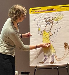 Author and illustrator Astrid Sheckels read aloud her new book, Flora and the Jazzers, to a packed audience.