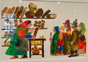 Eric Carle often fantasized about being a chef.  Food features heavily in Carle’s artwork.  Who doesn’t know The Very Hungry Caterpillar?  Seeing original illustrations from the book is an incredible experience for someone who has read it to children over and over again for decades.