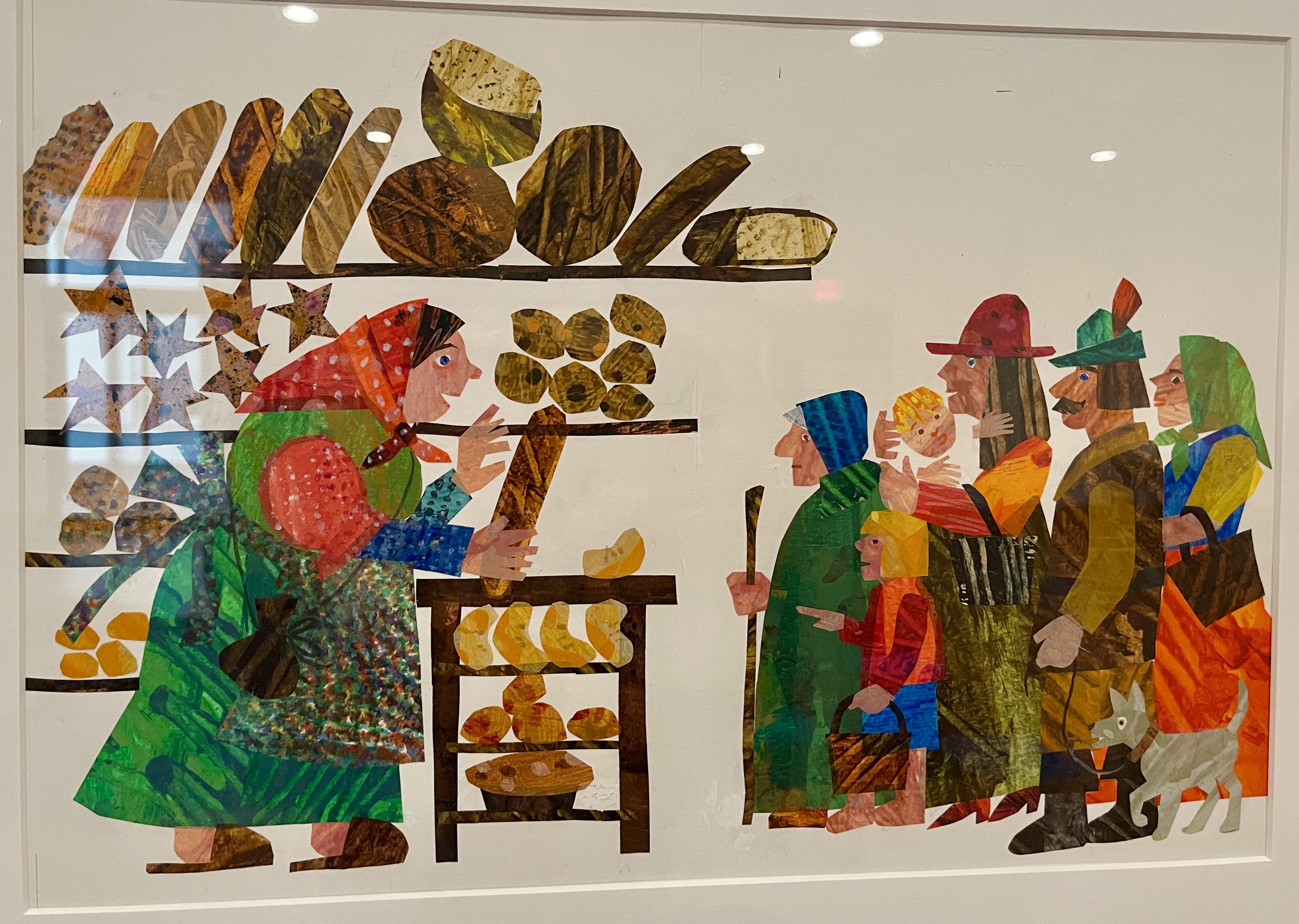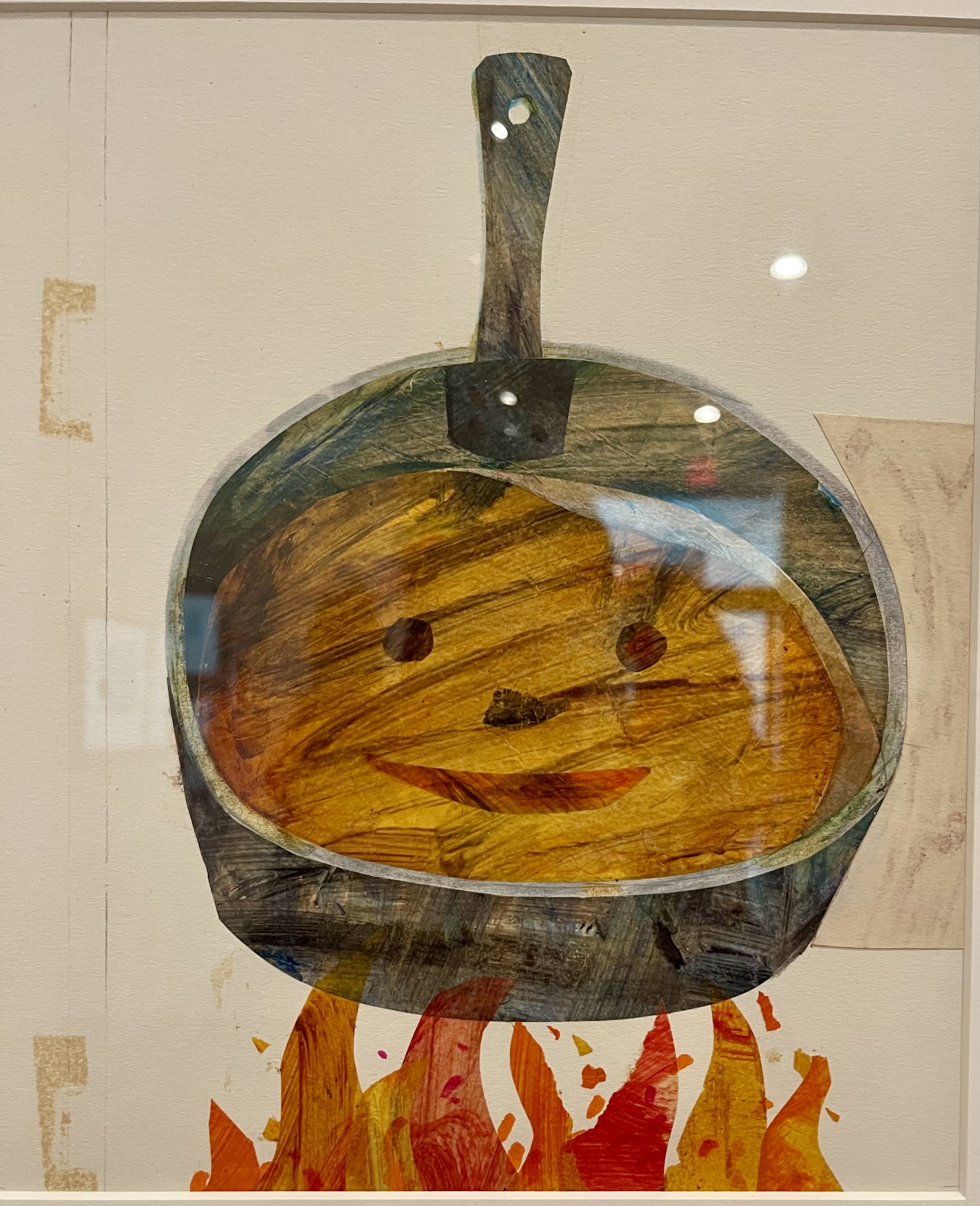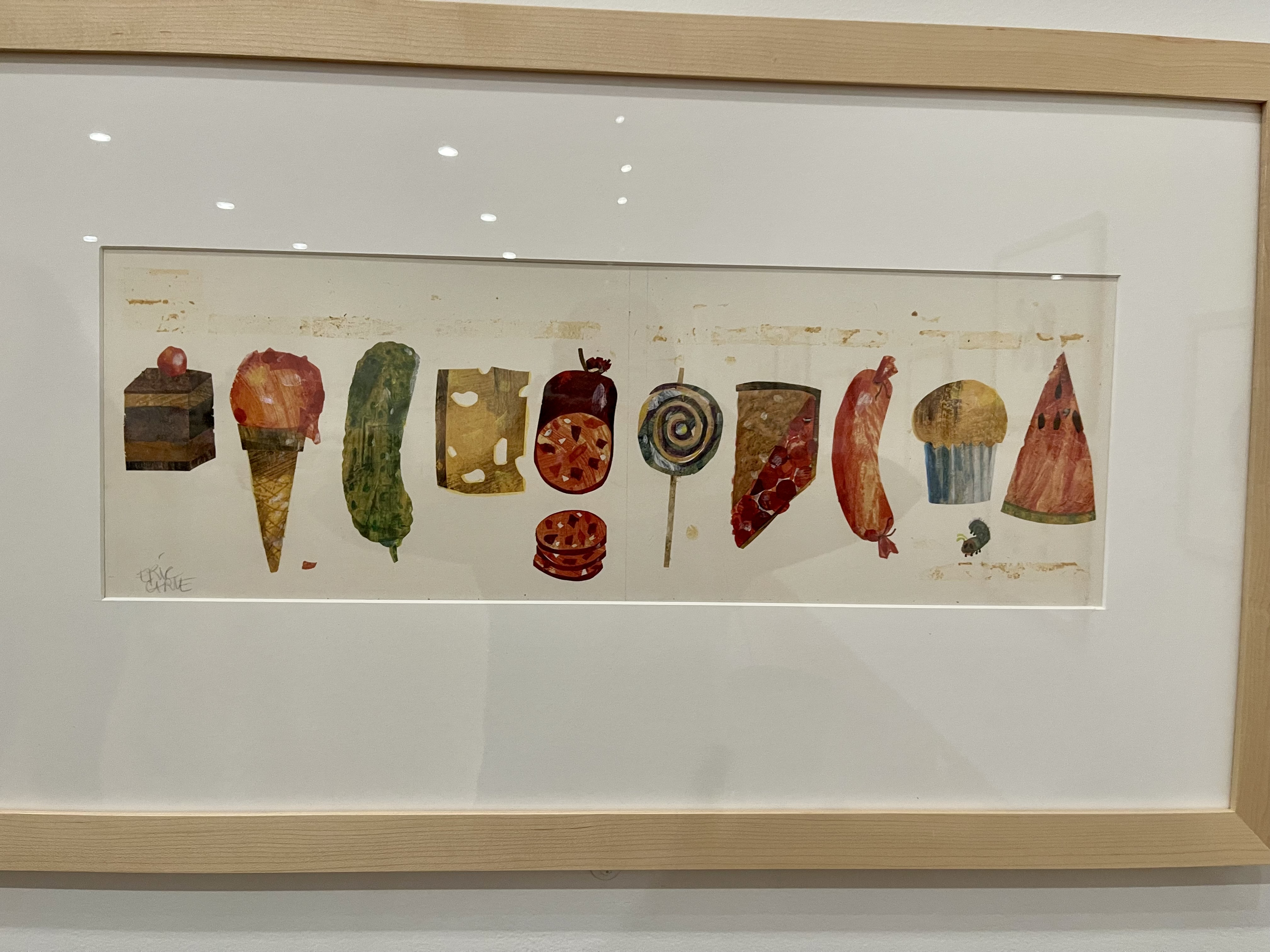 Eric Carle often fantasized about being a chef.  Food features heavily in Carle’s artwork.  Who doesn’t know The Very Hungry Caterpillar?  Seeing original illustrations from the book is an incredible experience for someone who has read it to children over and over again for decades.