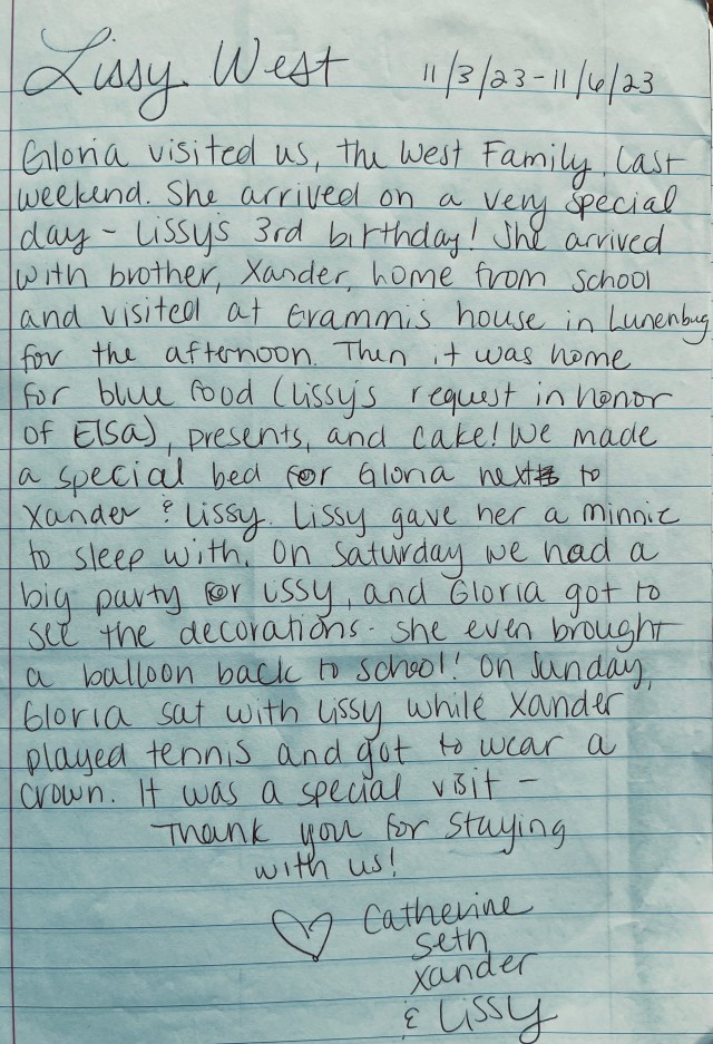 Yes, Emma loved books. She also adored Gloria. Her entries in Gloria’s journal are priceless.