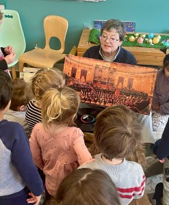 Children wait to hear their name and then shriek with laughter! There is much to be said about this; the listening and focus is intense. Children are getting a big dose of language and rhyming words. Best of all, they have to make the pictures in their heads, a necessary skill for chapter reading. It is wonderful!