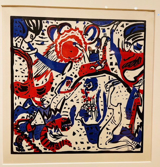 What happened at the Hood Museum was monumental for me. Of course there’s a backstory – the Eric Carle Museum. One of my first visits to the museum I learned about Eric Carle’s life and how he came into art. He was born in Germany, moved to the United States as a child, and the family returned to Germany in the mid-1930’s. Terrible timing with the Nazis and WWII. Carle had an art teacher in high school who recognized his talent. His teacher also risked his life to show Carle modern art – ‘forbidden art‘ – the paintings of five artists: