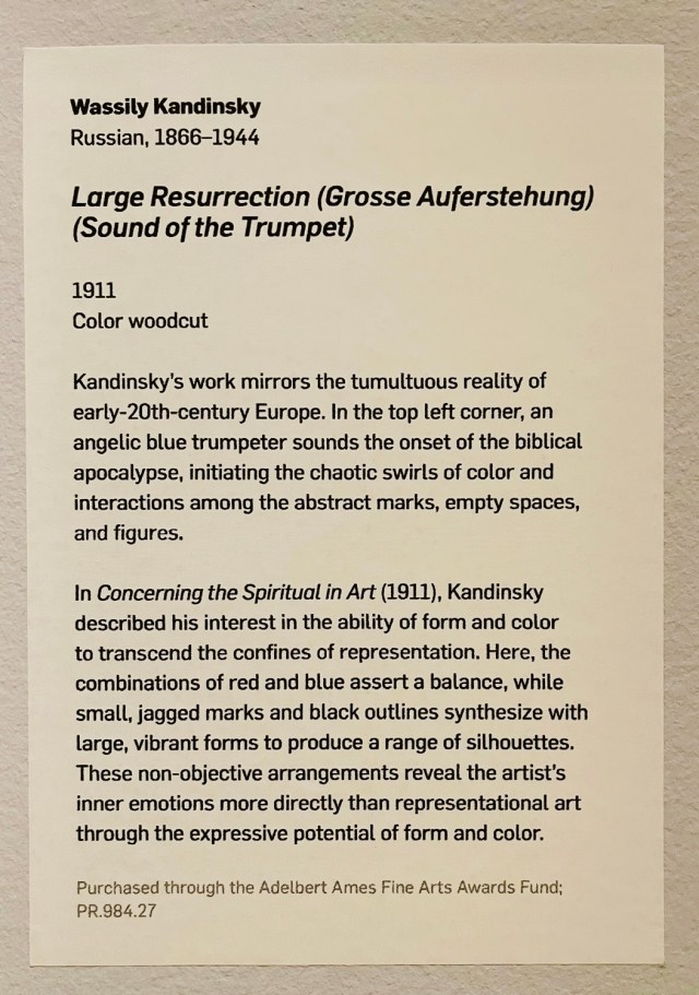 Every time I visit an art museum, big or small, I ask if they have a Kandinsky. Nope, not even the National Gallery of Art in Washington D.C. When I walked into the Hood Museum last weekend, there was a Kandinsky. I was overcome. “Are you okay Jennie?” was all I heard.