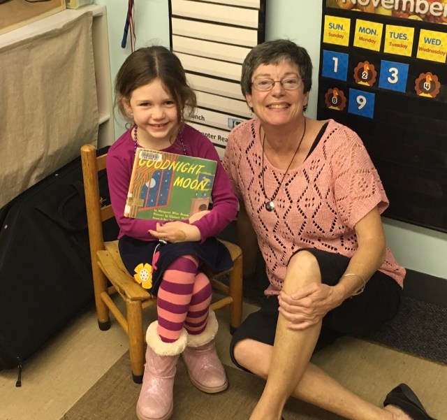 A few years later Emma returned to be a guest reader. She had learned to read, and wanted to read aloud the book she remembered hearing every day before chapter reading, Goodnight Moon.