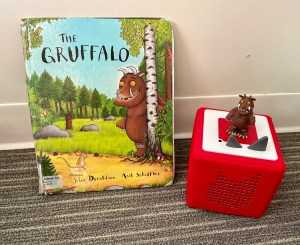 Today at school I read aloud a classic, favorite book, The Gruffalo, by Julia Donaldson. Next, children could listen to the story read aloud on their own. All they had to do was put the Gruffalo character on top of the Toniebox.