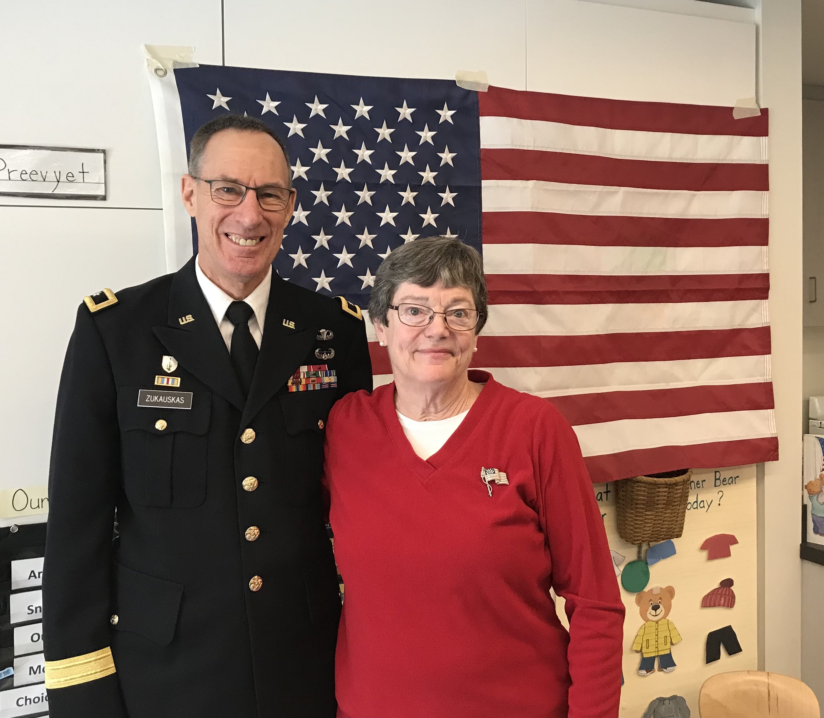 Our guest was a retired Army General. ‘General Z’ was wonderful. We presented him with our flag, and we sang “God Bless America.”