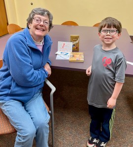 I’ve been reading to children at our public library for years. Lucky me. One of my first readers is the robot in the photo below.