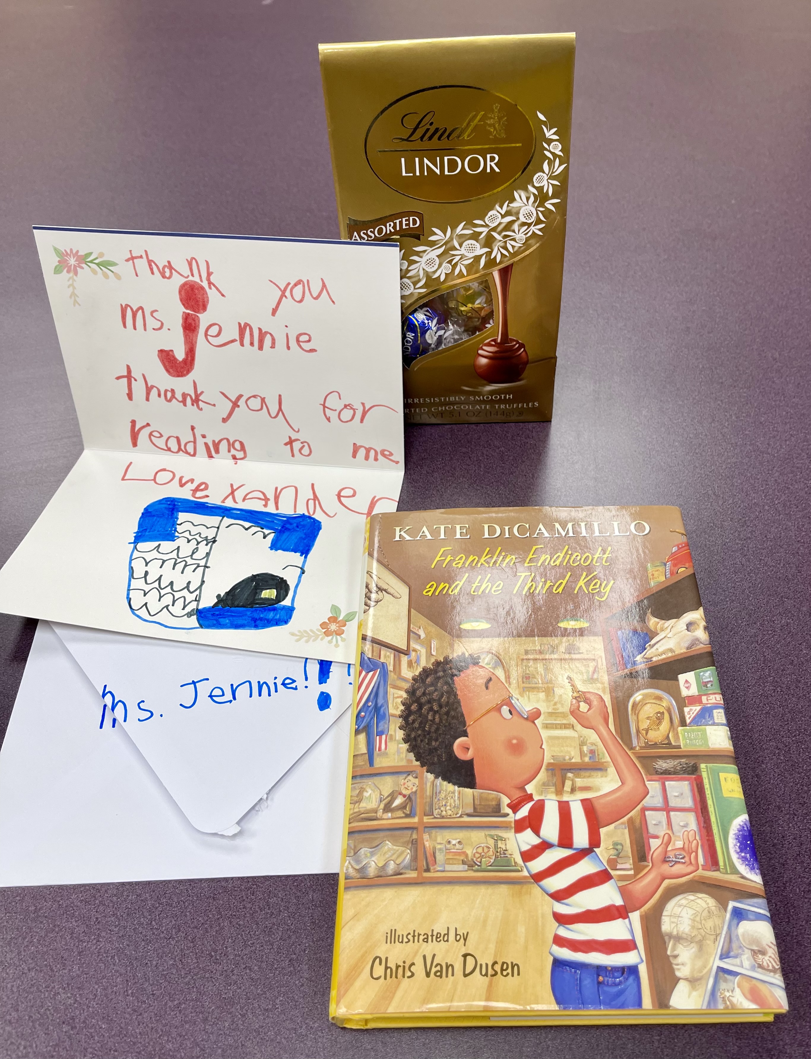 Such a nice thank you. I told my reader I was going to write to Kate DiCamillo and tell her about him. He knew I was serious. He smiled from here to kingdom come. If you have read the Mercy Watson books, I highly recommend the Tales From Deckawoo Drive books. If you just need a good book to read, or to read to older children, Kate DiCamillo is your go-to. She is mine.