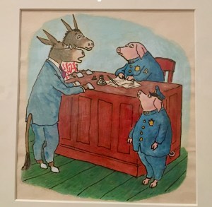 The book was actually banned for using pigs to represent police.